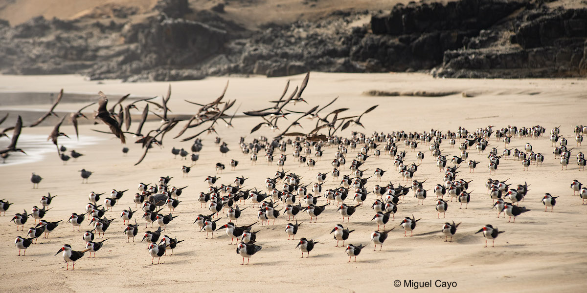 - Rayador negro(Rynchops niger), residente común.