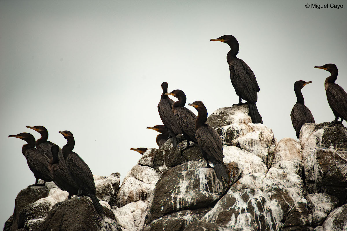 - Cormorán Guanay (Phalacrocorax bougainvillii), en peligro de extinción, residente común.